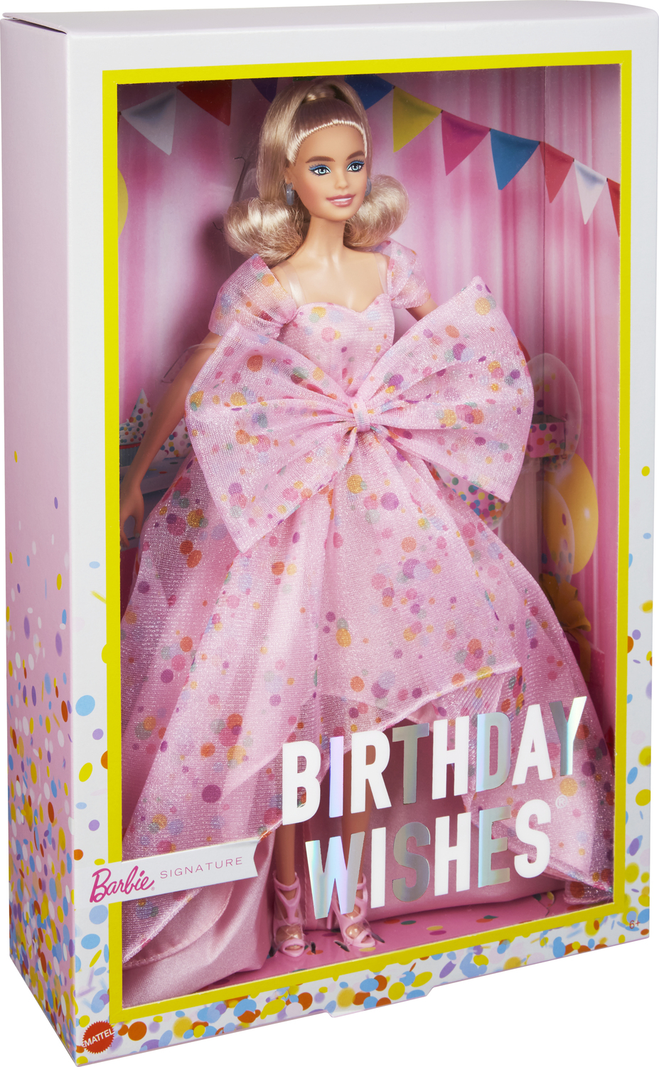 Barbie Birthday Wishes The Birthday Wishes dolls celebrate a very special event On this occasion they wear princess dresses in 2003 mermaid dresses in 2004 a top and skirt with ruffles in 2005 and since 2012 they wear a long pink dress with different variations of personalization to wish the birthday This collection began in 1999