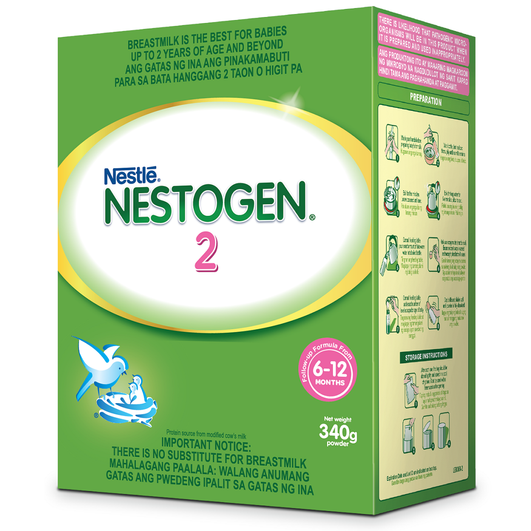 NESTOGEN 2 is a follow up formula suitable for infants from 6 to 12 months of age Protein source from cow s milk Follow up formula should not be introduced before 6 months of age Infants six months onwards should be given fresh indigenous and natural foods in combination with continued breastfeeding nbsp How to Prepare Boil fresh water for 1 minute Cool to room temperature before