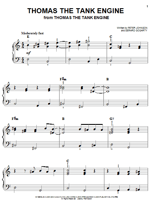 Score Type Interactive PDF Included with PASS Writer Peter Johnson Gerard Gogarty Format Digital Sheet Music Pages 2 Arrangement Easy Piano Publisher Hal Leonard Product ID 25568 Instruments Piano Keyboard Download and Print Thomas The Tank Engine sheet music for Easy Piano by Peter Johnson from Sheet Music Direct