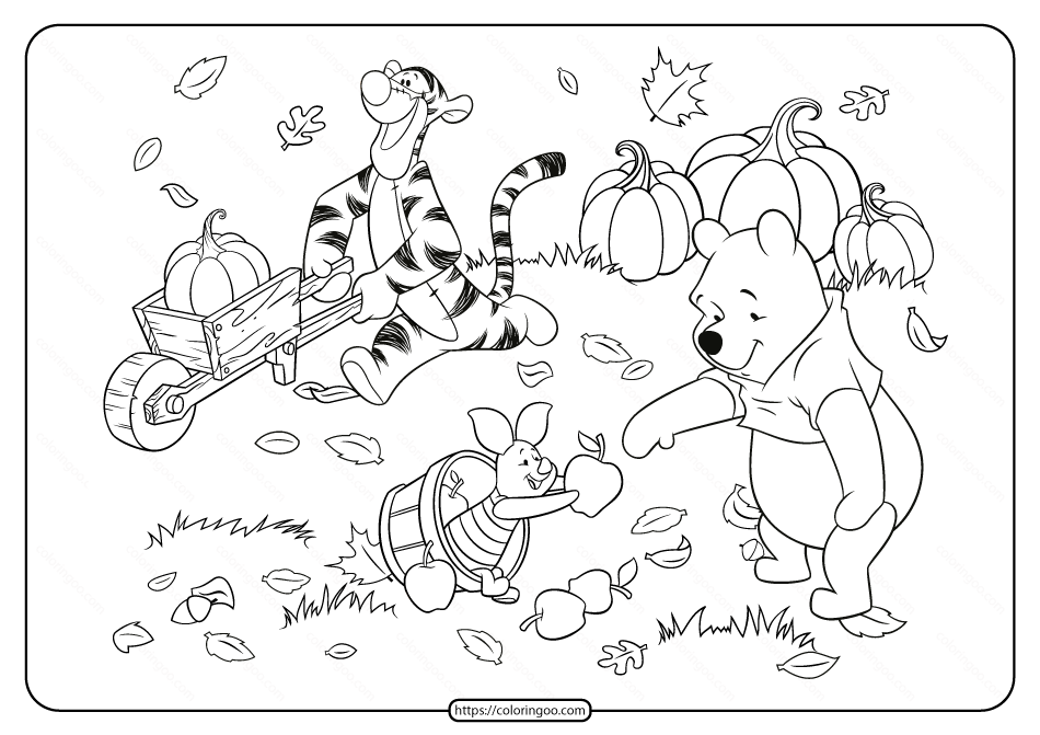 Download or print this amazing coloring page Winnie The Pooh And Friends Fall Coloring Page